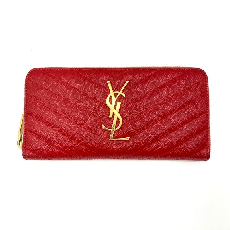 サンローラン Vステッチ INN358094 ラウンドファスナー長財布 レッド